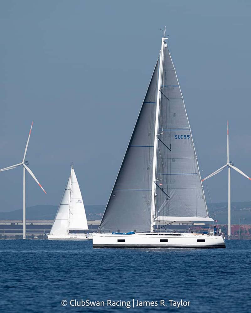 The highlight of the sabbatical was a two-week family cruise with my three children and their partners joining us in Turku. With nine people onboard, we sailed through the beautiful archipelagos of Turku and Stockholm. It was ‘champagne sailing’ with perfect winds between 10 and 25 knots. The first overnight crossing from Finland to Sweden was a memorable experience for all. Fujin served as a wonderful social platform. Our family cruise ended in Kalmar, Sweden, where we spent nine days waiting out a strong low pressure system and a storm. The final leg of our journey was sailing Fujin from Kiel to Scarlino (ITA). Leaving Kiel on 16 August, we sailed alongside two other Swan 55s, a fun and communal experience. We reached Gibraltar and Malaga ten days later. Sailing along the Portuguese coast, we experienced strong beam winds and reached speeds of up to 15.7 knots. To avoid orca attacks, we chose a route over 100 miles offshore – a wise decision. Orcas were a real concern. After a short stay at the Nautor Swan Global Service shipyard in Badalona, waiting for better weather, we sailed for Scarlino, with several stops along the coast to meet friends. We arrived mid-September, having achieved our goals of no accidents, no boat damage and no injuries. This four-month voyage was not only worthwhile, but also deeply fulfilling, with challenges that I embraced. It was an extraordinary experience for our family. We deeply loved the Baltic and hope to return one day to explore again the west coast of Sweden, the Stockholm archipelago and the islands around Mariehamn and Turku. Our first season with Fujin ended with the Swan Med Regatta in Scarlino (ITA) in mid-October.