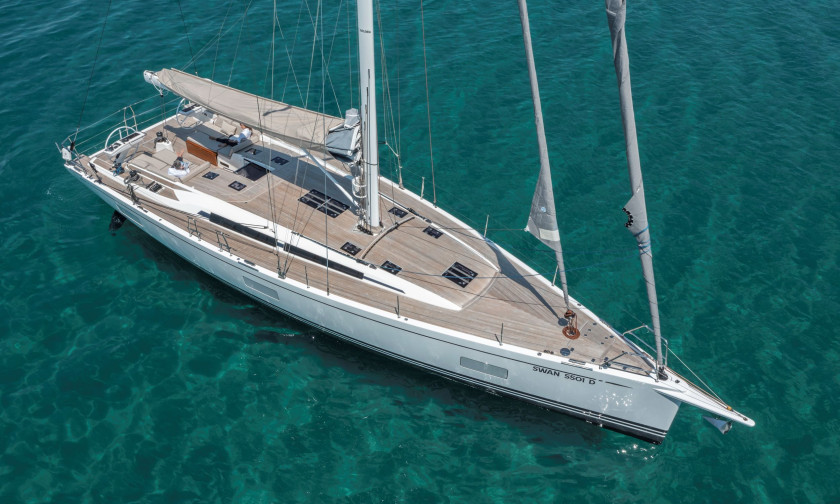 “A blue water with an exclusive layout is born. Three cabins, two bathrooms and a “stock” cabin, to be used according to the owner’s needs. A layout allowing great comfort for long periods of ocean navigation. The design matches with the materials. Those chosen for the Swan 55 have been selected to be aligned with life onboard and it mirrors a perfect home-lifestyle… practical, pleasant, comfortable and durable. 4 essential elements that need to coexist at sea.