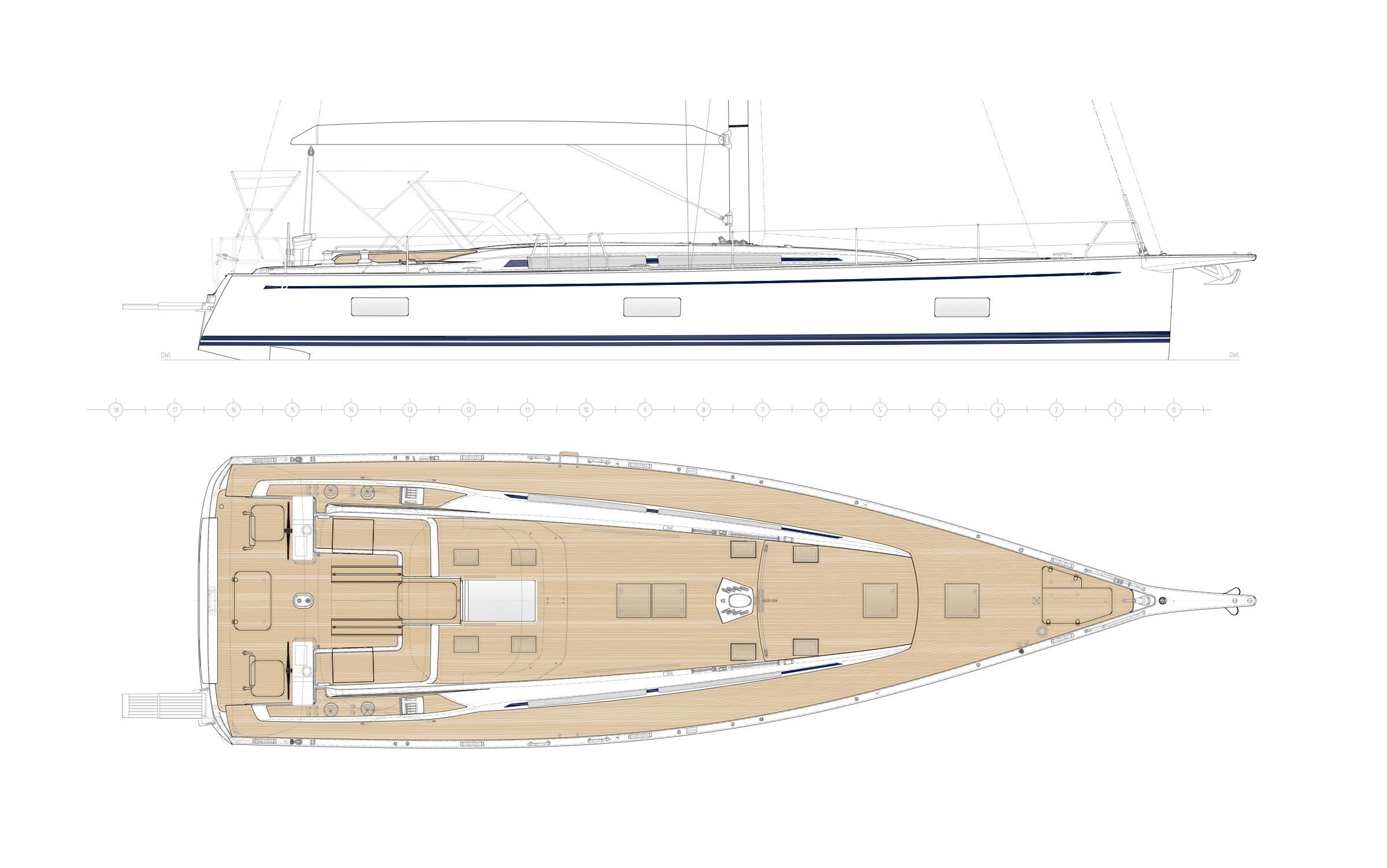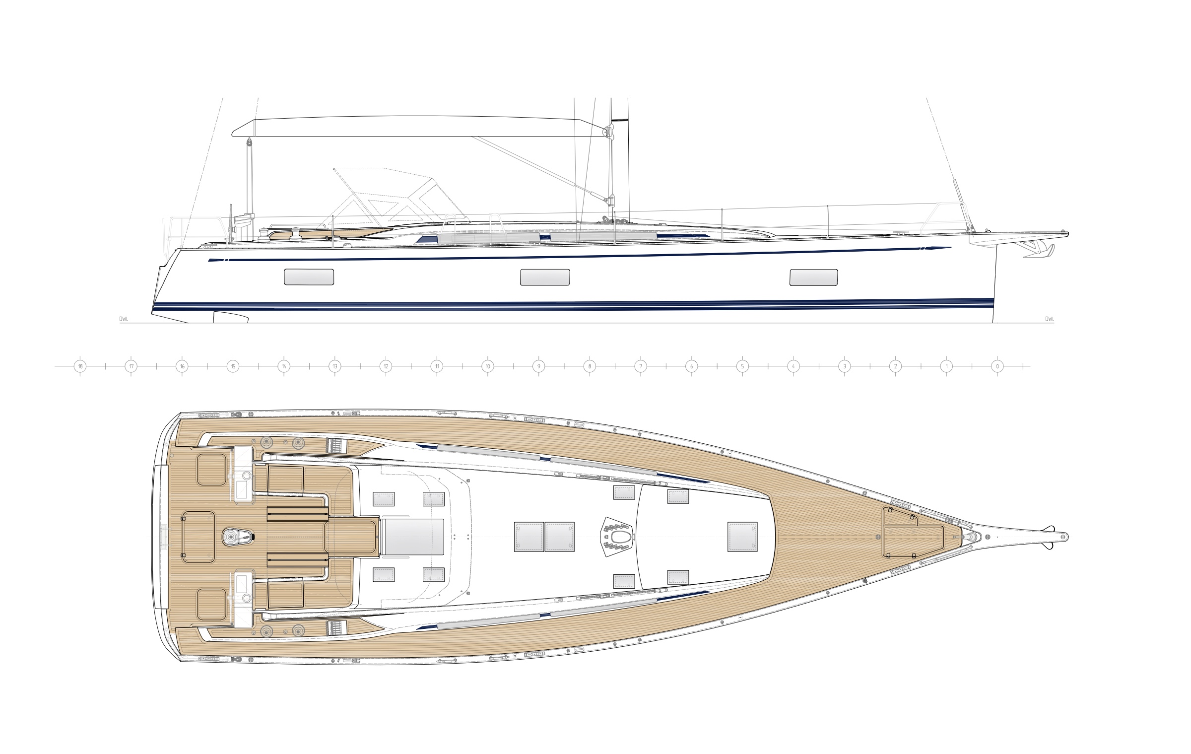 The deck is the most important area on a proper sailing yacht. The deck is where you control your yacht, enjoying the fun of sailing in pleasant weather and also conquering thrilling heavy storms while remaining safe and sheltered. At the same time, the deck is the area where you enjoy life at sea with family and friends: being at anchor in beautiful bays, swimming, sunbathing, dining alfresco and deploying the tender for exploring remote, untouched places. … all in all, the deck is where you mostly experience the true pleasures of sailing and cruising.